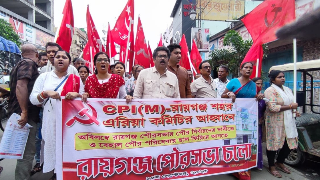 রায়গঞ্জ পৌর নাগরিক পরিষেবা নিয়ে দীর্ঘদিনের অসন্তোষের প্রেক্ষিতে সরব হল সিপিআই (এম)। বৃহস্পতিবার রায়গঞ্জ- শহর এরিয়া কমিটির পক্ষ থেকে রায়গঞ্জ পৌরসভা অভিযান কর্মসূচি পালিত হয়। ছিলেন সিপিআই(এম) রাজ্য কমিটির সদস্য উত্তম পাল, পলাশ দাস, যুবনেতা শতরূপ ঘোষ,উত্তর দিনাজপুর জেলা সম্পাদক আনোয়ারুল হক সহ অন্যান্য নেতৃত্ব।