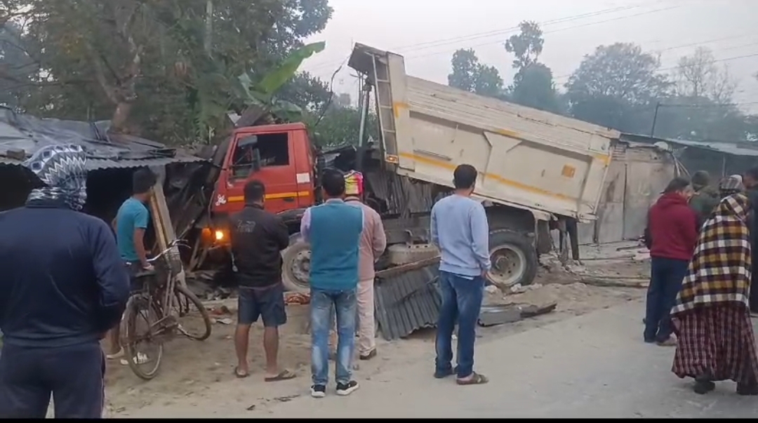 রাতভর নম্বর বিহীন ডাম্পারের দাপাদাপি তারপর ভোর রাতে নিয়ন্ত্রণ হারিয়ে দোকানের মধ্যে ঢুকে গেল ডাম্পার। ঘটনায় ৫-৬ টি দোকান ভেঙে চুরমার হয়েছে। স্থানীয় জনতা গাড়িটিকে আটকে বিক্ষোভ দেখায়। অসহায় দোকানের মালিকেরা দারস্থ হয়েছে পুলিশ প্রশাসনের। পুলিশ এসে ঘাতক ডাম্পারকে আটক করে থানায় নিয়ে যায়। স্থানীয় সূত্রে জানা যায় শনিবার ভোর চারটা নাগাদ হঠাৎ প্রচন্ড শব্দে কেঁপে ওঠে চোপড়া থানার কালাগজ মাছ বাজার এলাকা। মুহূর্তের মধ্যেই আশেপাশের লোকজন বাইরে বেরিয়ে দেখে একটি নম্বর প্লেট হীন ডাম্পার বেশ কয়েকটি দোকানকে ভেঙে পানের ঘন্টি এবং সাইকেলের দোকানের মধ্যে ঢুকে পড়েছে। লোকজন জমায়েত হওয়ার আগেই গাড়ির ড্রাইভার পালিয়ে যায়। ঘটনায় ৫-৬ টি দোকান ভেঙে চুরমার হয়ে যায়। স্থানীয় জনগণ গাড়ি থেকে আটকে বিক্ষোভ দেখাতে শুরু করে। দুর্ঘটনার কথা শোনা মাত্রই চোপড়া থানার পুলিশ ঘটনাস্থলে পৌঁছালে দুর্ঘটনা স্থলে পৌছায়। দোকানের মালিকেরা ক্ষতিপূরণের দাবী জানায়। পুলিশ ক্ষতিপূরণের আশ্বাস দিলে স্থানীয় জনতা বিক্ষোভ তুলে নেয়। পুলিশ ঘাতক ডাম্পারকে আটক করে চোপড়া থানায় নিয়ে আসে। স্থানীয় বাসিন্দাদের অভিযোগ সন্ধ্যার পর থেকেই কালাগজ, হাপ্তিয়াগছ রাজ্য সড়কে শুরু হয় নাম্বার প্লেট হীন ডাম্পার এবং লরির দাপাদাপি। রাত বাড়তেই তা আরও বাড়তে থাকে। এর আগেও কালাগজ এলাকায় বেশ কয়েকটি দুর্ঘটনার ঘটেছে। পুলিশকে একাধিকবার অভিযোগ করা হলেও কমেনি গাড়ি চলাচলের অত্যাচার। স্থানীয়রা দাবি তোলেন, অবিলম্বে দুর্ঘটনা গ্রস্থ দোকান মালিকদের ক্ষতিপূরণ প্রদান করতে হবে এবং রাতের অন্ধকারে চলা অবৈধ ডাম্পার এবং লরি চলাচল বন্ধ করতে। দাবি পূরণ না হলে আগামীতে বৃহত্তর আন্দোলনে নামার হুশিয়ারী দেয় স্থানীয়রা ।