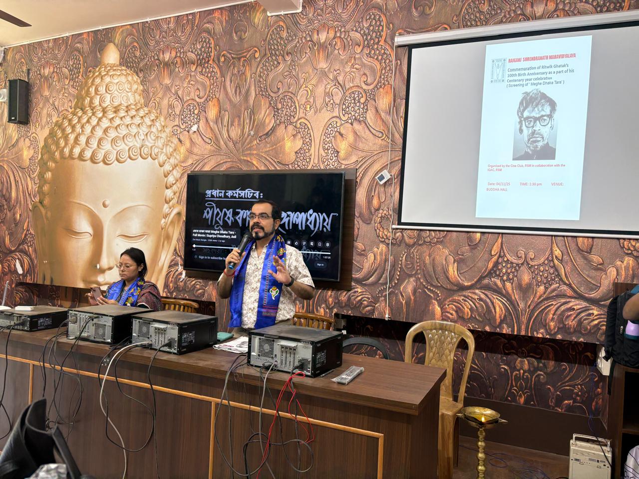 অধ্যক্ষ ড. চন্দন রায় তাঁর সংক্ষিপ্ত কিন্তু তথ্যবহুল ভাষণে ঋত্বিক ঘটকের জীবন, সৃজনশীলতা এবং সমকালীন সমাজে তাঁর প্রাসঙ্গিকতা নিয়ে গভীর বিশ্লেষণ উপস্থাপন করেন। তাঁর বক্তব্য শিক্ষার্থীদের মধ্যে চলচ্চিত্র ও সমাজবাস্তবতার সম্পর্ক নিয়ে নতুন চিন্তার দিগন্ত উন্মোচন করে।