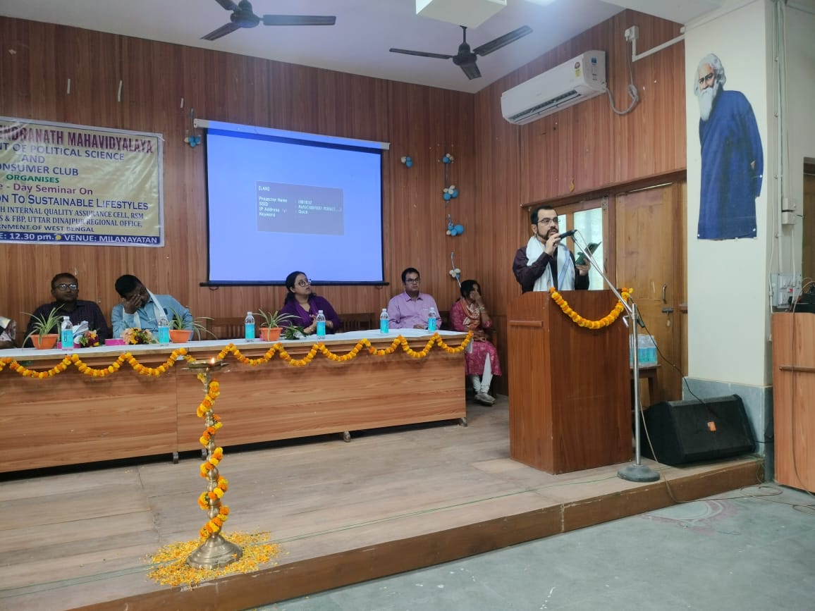ক্রেতা সুরক্ষা দপ্তরের উদ্যোগে রায়গঞ্জ সুরেন্দ্রনাথ মহাবিদ্যালয়ে আয়োজিত হল “A Just Transition to Sustainable Lifestyle” শীর্ষক একদিনব্যাপী সেমিনার। এই অনুষ্ঠানের আয়োজন করে কলেজের রাষ্ট্রবিজ্ঞান বিভাগ ও কনজিউমার ক্লাব, আইকিউএসি-র সহযোগিতায়। সেমিনারের সূচনা হয় দুপুর ১২টা ৩০ মিনিটে প্রদীপ প্রজ্বলনের মাধ্যমে।