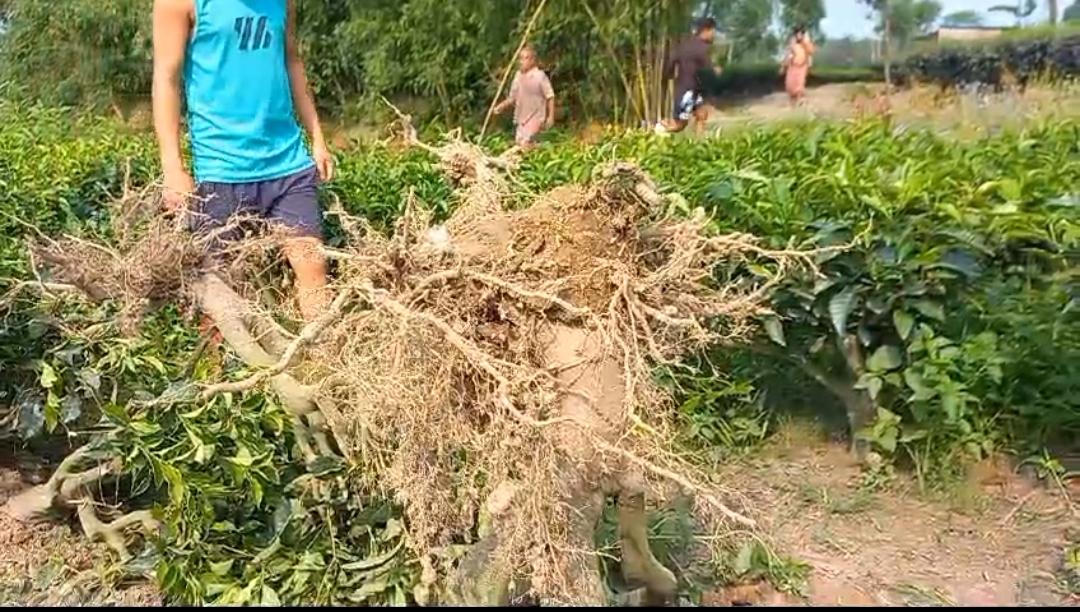 ফের চোপড়া এলাকায় রাতে অন্ধকারে চা বাগান উপড়ে ফেলার ঘটনায় এলাকায় চঞ্চল ছড়ায় । চোপড়া এলাকায় চা শিল্পের উপর পরিকল্পিত আঘাত হানছেন কতিপয় ব্যক্তি ।ওই ব্লকের সুরভিপল্লীর দুটি বাগানের চা গাছ উপড়ে ফেলে দুষ্কৃতীরা। ওই চা বাগানের মালিক রাজেশ সিংহ জানান, এদিন সকালে খবর পেলাম যে আমাদের বাগানের চা গাছ উপড়ে ফেলেছে দুষ্কৃতিরা । প্রায় বারোশো চা গাছ উপরে ফেলেছে। এবার এমনিতেই রোগ পোকার আক্রমণ এবং প্রকৃতির রোষে পড়ে চা বাগানের অবস্থা খুবই খারাপ তারপরেও আমরা নিয়ম ও পরিচর্যা করে চা বাগান বাঁচিয়ে রেখেছিলাম। সেই গাছ উপরে ফেলে বাগানের ক্ষতি করেছে দুষ্কৃতীরা। বিষয়টি চোপড়া থানায় জানানো হবে। অপরদিকে ফনিশ সিংহ নামে ওপর এক ব্যক্তি চা বাগানের একাংশ গুলো দিয়েছে দুষ্কৃতীরা। তিনি বলেন, ওই বাগানের উপর আমার সংসার টিকে আছে। অনেক পরিশ্রম ও পরিচর্যা করে বাগান টিকিয়ে রেখেছি এবং ভালো ফলনের আশা করেছিলাম। রাতের অন্ধকারে কে বা কারা বাগানের প্রচুর গাছ উপড়ে ফেলেছে। আমার কোন শত্রু নেই। তবে কারা এই ঘটনা ঘটালো তার তদন্তের দাবি জানাচ্ছি।